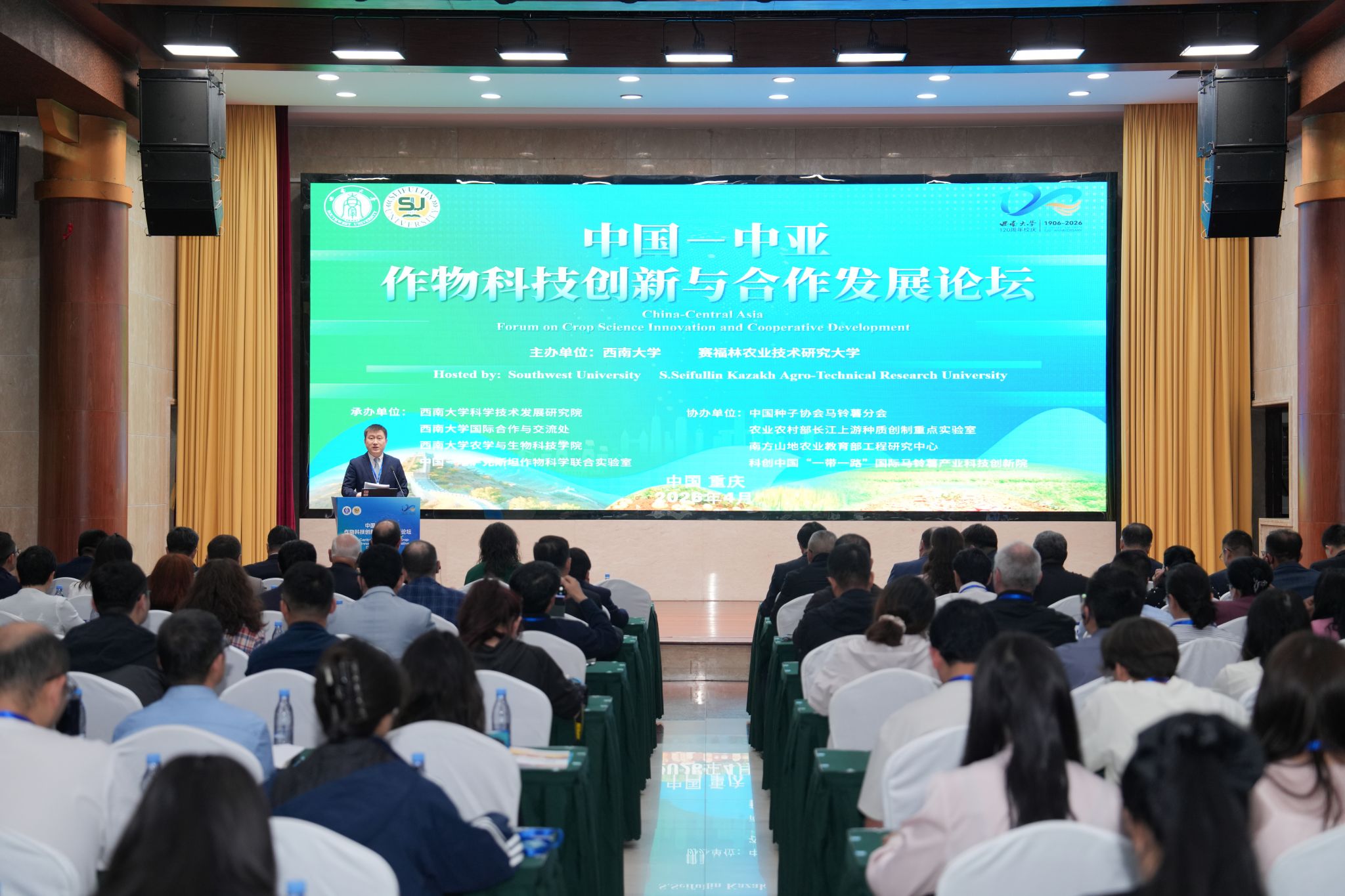 4月17日,由西南大学与哈萨克斯坦赛福林农业技术研究大学联合主办的中国-中亚作物科技创新与合作发展论坛在学校举行。重庆市农业农村委员会、西南大学相关领导出席活动,来自中亚及“一带一路”沿线国家、国际科研机构、国内高校与科研院所的100余位作物科学领域专家学者参加。本次论坛以“绿色丝路,丰盈未来”为主题,搭建中外专家学者、科研机构与产业界学术交流与技术对接平台。