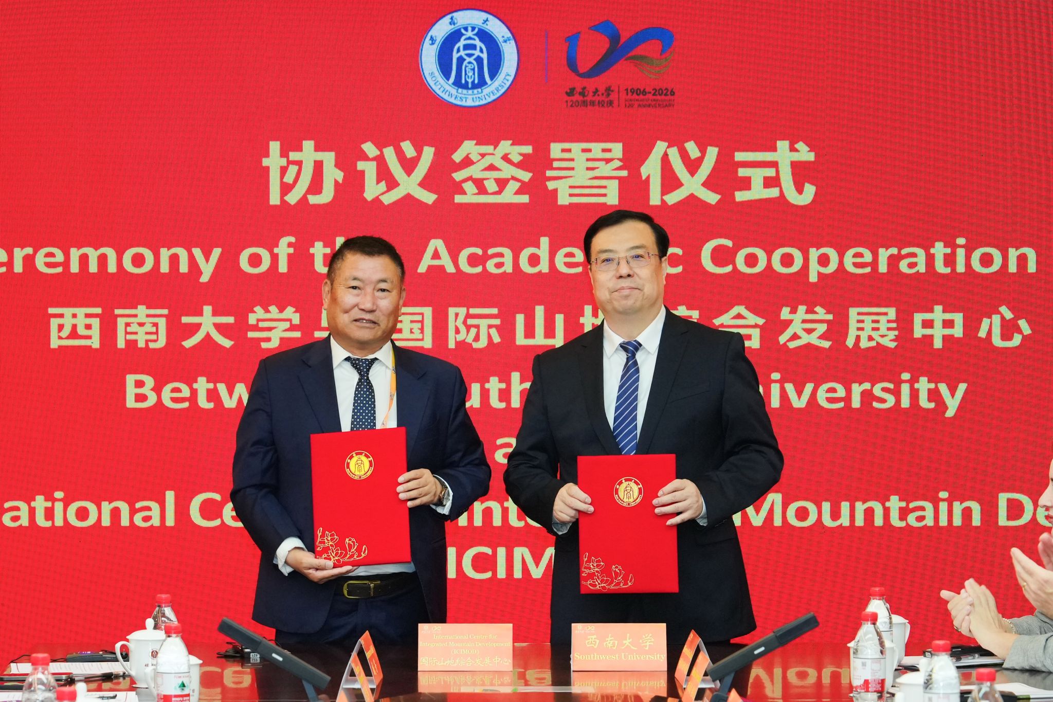 校庆期间,学校国际合作再结硕果,多项合作取得积极进展。在全体嘉宾共同见证下,王进军与国际山地综合发展中心总干事白马・嘉措现场签署《西南大学与国际山地综合发展中心学术合作协议书》。