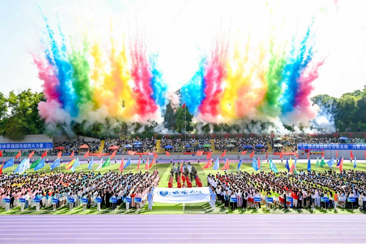 据悉,本届运动会暨体育文化节将持续至4月24日,将在第一、第二、第四运动场同步开展师生田径比赛、教工趣味比赛、体育文化节暨学生社团开放体验日、广播体操比赛等多项活动,荣昌校区也将同步举办趣味比赛。