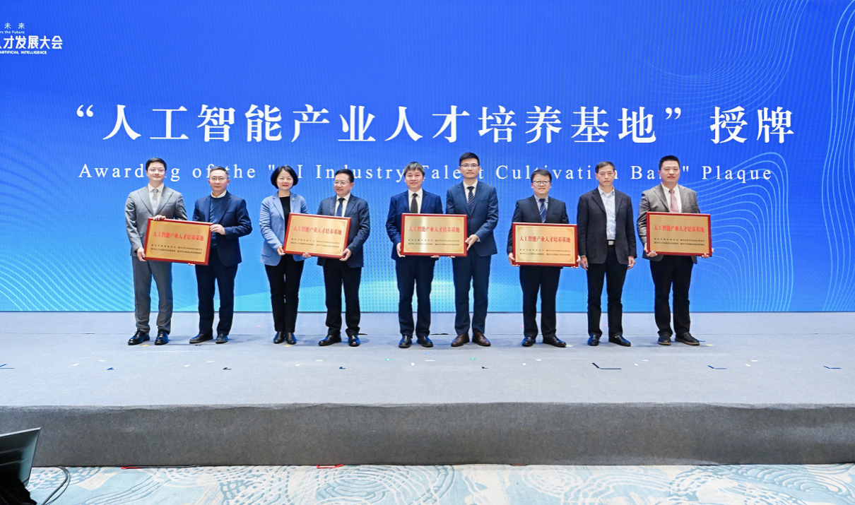 会上,西南大学被授予“人工智能产业人才培养基地”,嵇绍岭代表学校接受授牌。