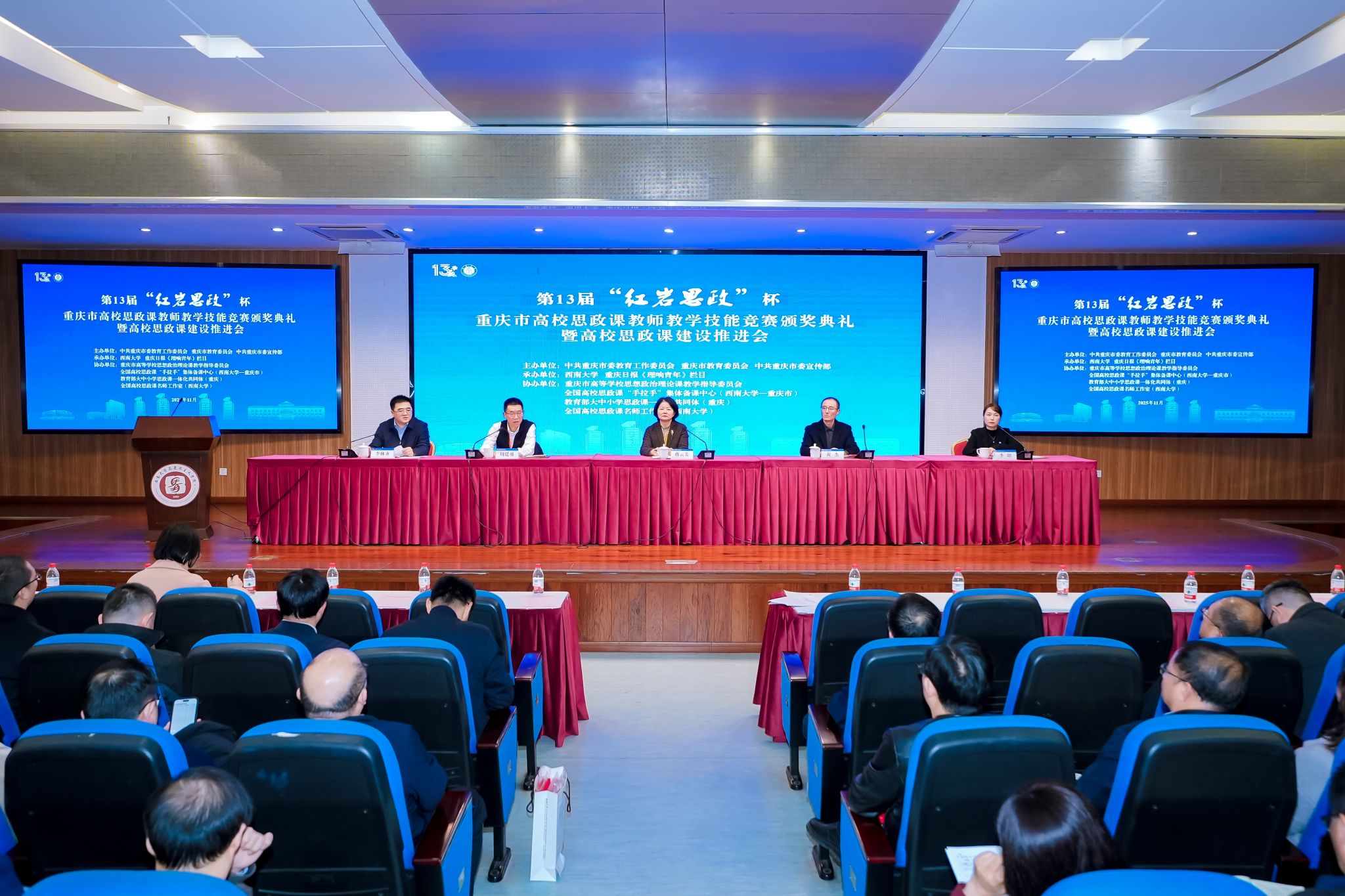 会议由中共重庆市委教育工作委员会、重庆市教育委员会、中共重庆市委宣传部主办,西南大学、重庆日报《理想青年》栏目承办,重庆市高等学校思想政治理论课教学指导委员会、全国高校思政课“手拉手”集体备课中心(西南大学—重庆市)、教育部大中小学思政课一体化共同体(重庆)、全国高校思政课名师工作室(西南大学)协办。