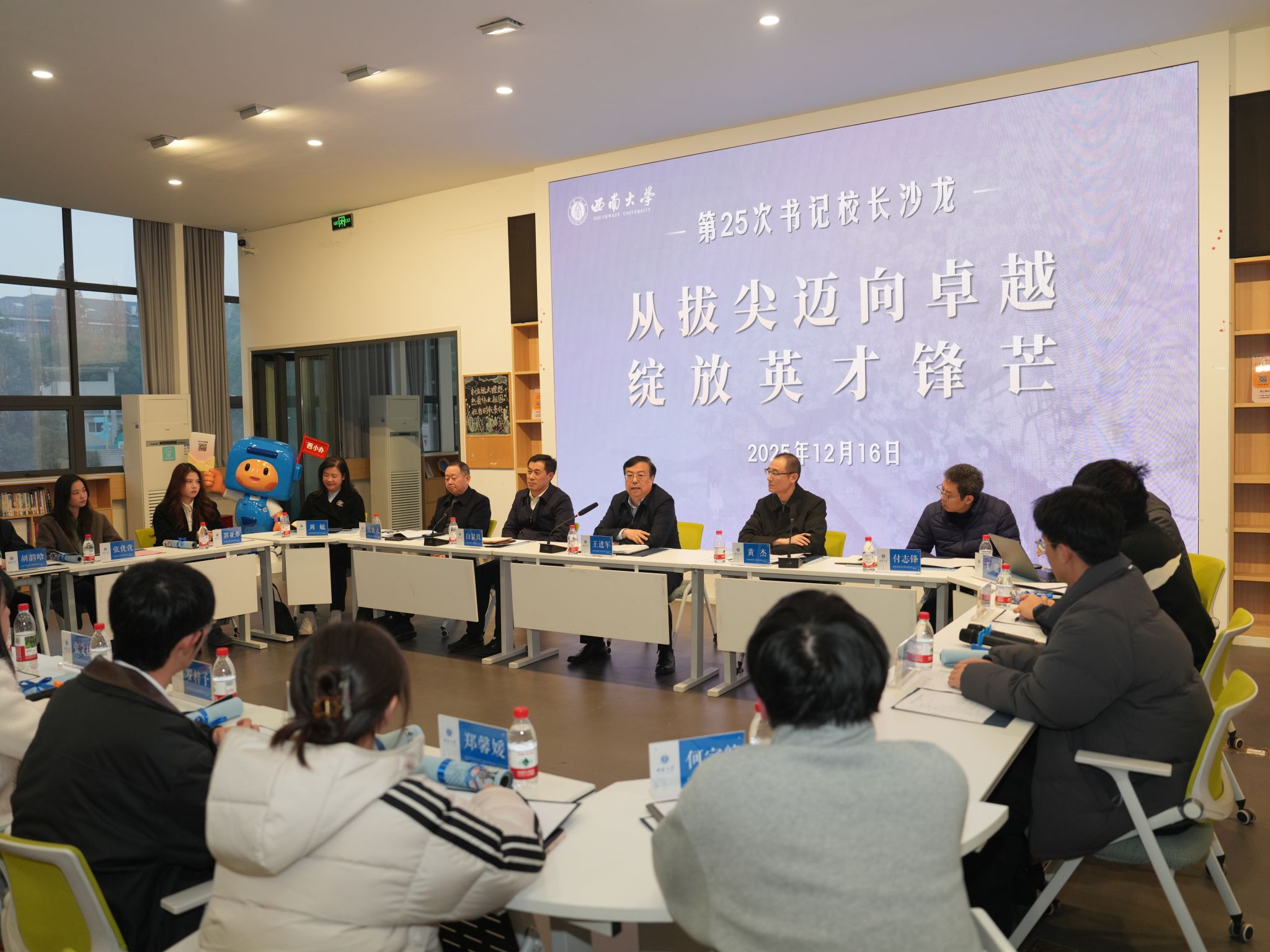 12月16日,校长王进军在青李空间多功能厅与拔尖创新实验班学生代表座谈交流,倾听学生建议,共话成才发展。党委副书记黄杰、副校长白显良,学校相关职能部门负责人参加会议。会议由黄杰主持。