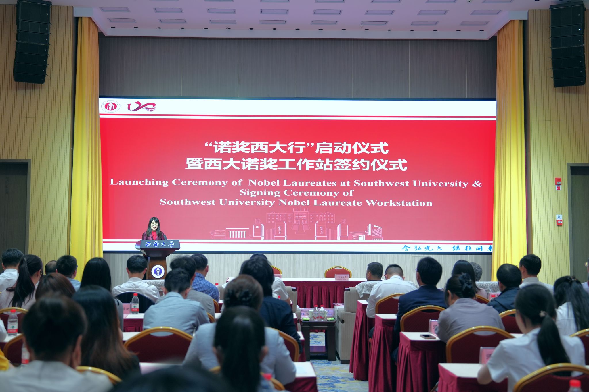 4月18日下午,学校举行2026年“诺奖西大行”启动仪式暨西大诺奖工作站签约仪式。2022年诺贝尔化学奖获得者莫滕·梅尔达尔院士,1994年菲尔兹奖获得者埃菲·杰曼诺夫院士,学校党委书记张卫国,副校长邹芙都、赵玉芳出席仪式。赵玉芳主持仪式。