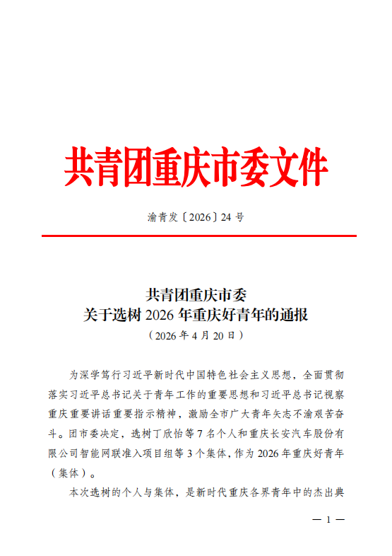 据悉,“重庆好青年”宣传选树活动是由共青团重庆市委主办的市级青年典型选树活动,该活动聚焦14至35周岁青年群体,覆盖“33618”现代制造业集群体系、“416”科技创新布局、超大城市现代化治理等领域 ,旨在充分发挥先进典型的示范引领作用,激励广大青年挺膺担当,奋力谱写中国式现代化重庆篇章。