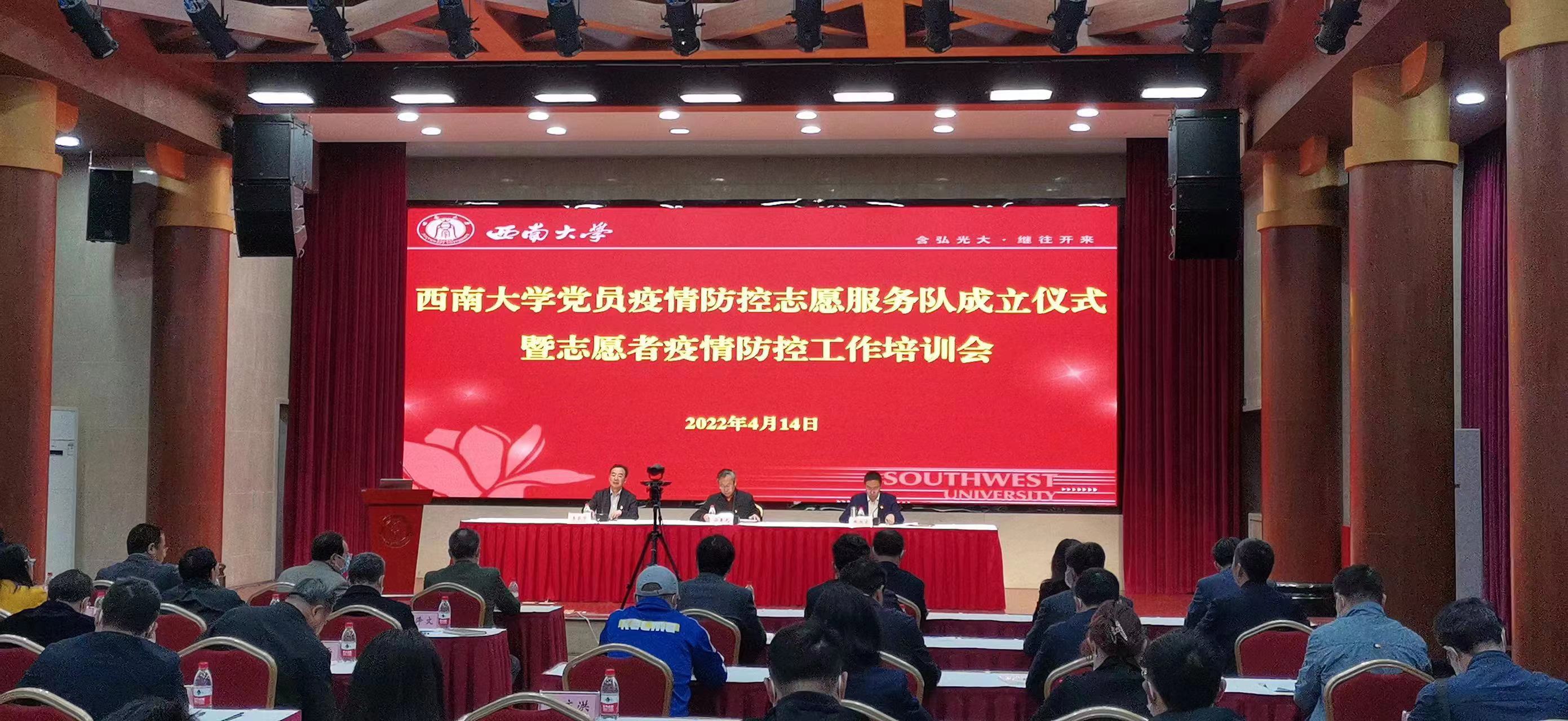 4月14日下午,学校举办党员疫情防控志愿服务队成立仪式暨志愿者疫情防控工作培训会,深入贯彻落实习近平总书记关于疫情防控的重要指示精神和上级党组织工作要求,加强学校党员疫情防控志愿者服务队建设,切实做好志愿者疫情防控工作培训。