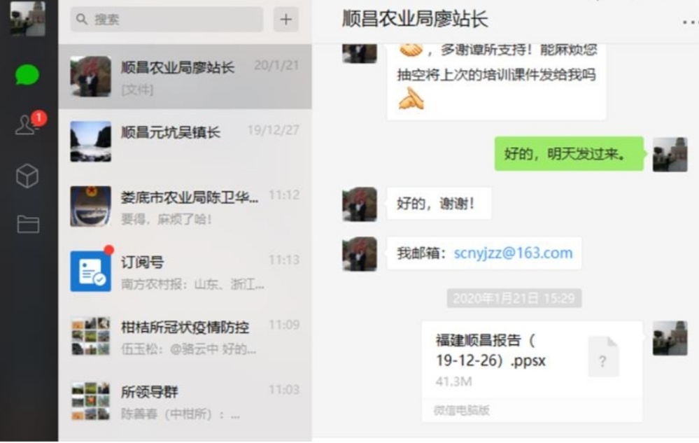 湖南娄底市和福建顺昌县是西南大学柑桔研究所新签订的科技合作市县,为促进当地种苗繁育基地建设进度,2月17日,李太盛副研究员及时和对方进行了电话指导,并要求对方在做好疫情防控的前提下,做好育苗基质和网室建设准备工作,争取在3月份进行苗木嫁接,保证年底苗木出圃。谭志友副所长也根据福建顺昌农业农村局要求,于1月下旬及时发送了技术培训PPT。