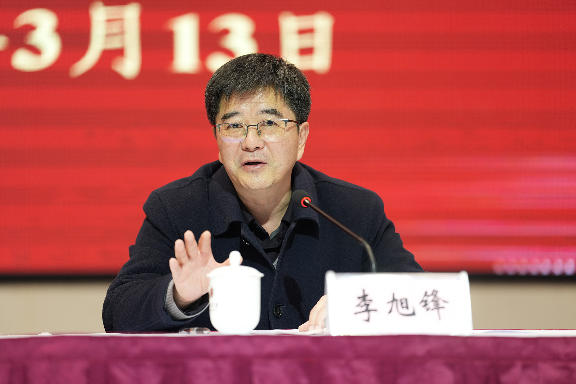 李旭锋在讲话中指出,学习贯彻落实习近平总书记重要讲话精神和全国两会精神,是当前学校一项重要政治任务。他提出:一是要提高站位、深化认识,准确把握习近平总书记重要讲话精神和全国两会精神的深刻内涵和精神实质。二是要精心组织、创新形式,迅速掀起学习宣传贯彻习近平总书记重要讲话精神和全国两会精神的热潮,精心组织传达学习。三是要结合实际、抢抓机遇,全力推进学校各项工作落实见效。尤其是要对标新质生产力发展要求,在融入上着力;对表教育、科技、人才“三位一体”重要部署,在改革上着力;对照学校“十四五”规划和年度工作要点,在落实上着力。