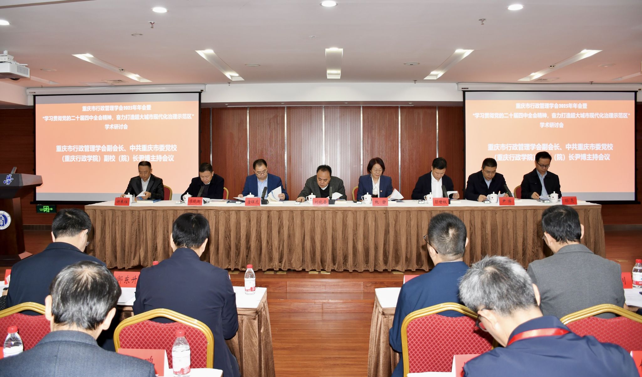 11月15日,由重庆市委党校、西南大学主办的重庆市行政管理学会2025年学术年会暨“学习贯彻党的二十届四中全会精神 奋力打造超大城市现代化治理示范区”学术研讨会在学校举办。中国行政管理学会副会长鲍静,重庆市委党校常务副校长、重庆市行政管理学会会长刘晓吾,北碚区委副书记彭世权,重庆市社会科学界联合会副主席唐旺虎,重庆市委党校副校长、重庆市行政管理学会副会长尹博,重庆市委党校教育长、重庆市行政管理学会副会长谢来位,重庆市民政局社会组织管理局副局长孙亮,学校副校长廖晓衡出席会议。会议开幕式由尹博主持。