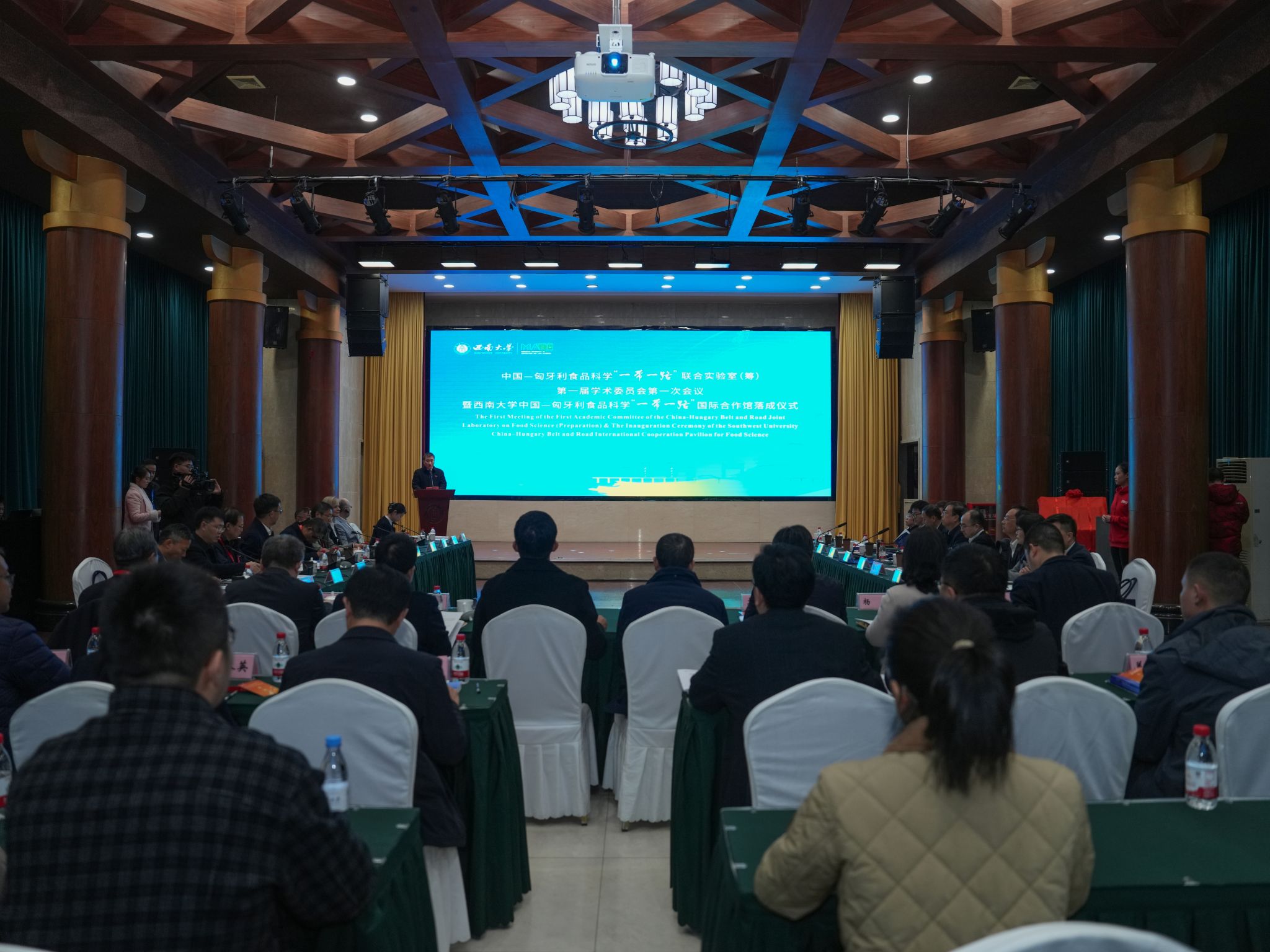 12月15日,中国—匈牙利食品科学“一带一路”联合实验室(筹)第一届学术委员会第一次会议暨西南大学中国—匈牙利食品科学“一带一路”国际合作馆落成仪式在学校举行。会议围绕中匈食品科学领域科技合作与交流,聚焦联合实验室(筹)建设与运行机制,系统推进双方在相关领域的协同创新与务实合作。来自重庆市有关部门、匈牙利驻重庆总领事馆、中国食品科学技术学会以及中匈双方高校、科研机构的领导与专家代表参加活动。
