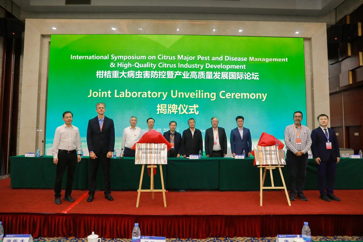开幕式还举行了中国—巴西柑桔重大病虫害防控国际合作联合实验室、中国—黑山作物有害生物可持续控制国际合作联合实验室揭牌仪式,范大明、巴西柑桔保护基金会首席科学家Nelson Wulff、黑山大学生物技术学院院长Igor Pajovic为联合实验室揭牌。未来,两个实验室将聚焦跨境病虫害监测预警、抗性品种联合培育等领域开展国际合作研究。