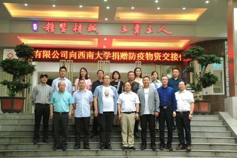 5月21日,重庆苡澍生物科技有限公司(以下简称“苡澍生物”)向学校捐赠消毒液2吨,手部消毒液2000支,助力学校疫情防控工作。捐赠仪式在校医院会议室举行。仪式由教育基金会负责人主持。