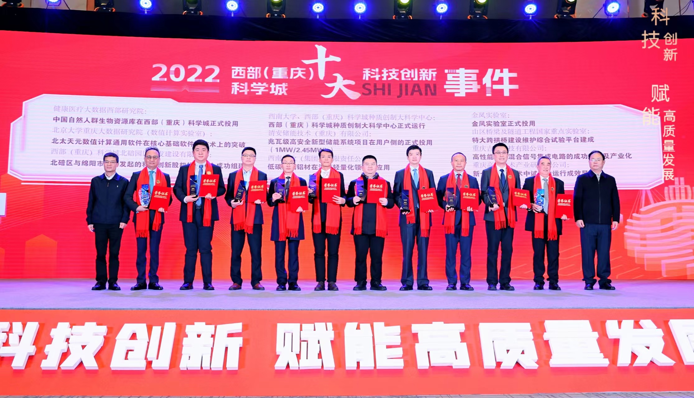 据悉,以“科技创新 赋能高质量发展”为主题的2022十大重庆科技创新年度人物评选活动是由中共重庆市委宣传部指导,重庆日报报业集团主办,重庆市科学技术协会、西部科学城重庆高新区管委会支持,天眼查提供数据支持。此活动旨在全面贯彻落实党中央和市委相关精神,通过表彰一批重庆科创领域人才及科技创新事件,大力弘扬科学家精神,营造浓厚的科创氛围,为建设具有全国影响力的科技创新中心、推进成渝地区双城经济圈建设和发展贡献更大力量。本次活动历时近8个月,吸引了来自市内各科研院所、高校、企业等多领域科技创新人士报名,三大奖项共收到116份参评资料。为保证活动公平性,经过沟通考察、综合评审、社会公示等环节,评选出“2022十大重庆科技创新年度人物”“2022十大重庆科技创新年度企业家”“2022西部(重庆)科学城十大科技创新事件”榜单。