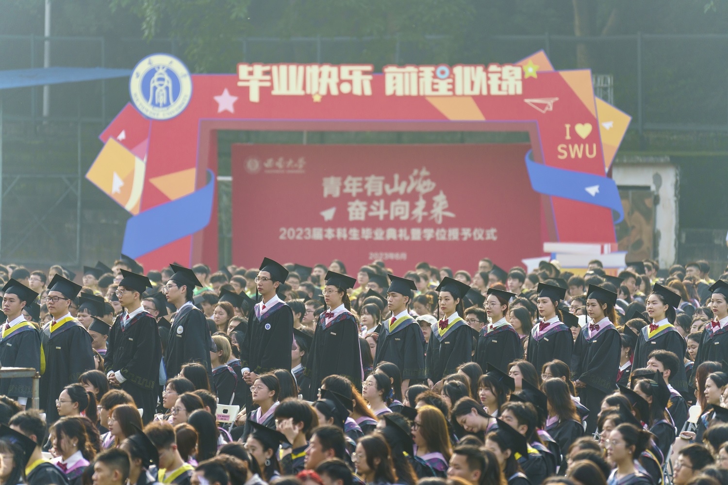 青春正当时,梦想新起航。6月20日上午,学校在北碚校区第一运动场和荣昌校区学生活动中心同步举行2023届本科生毕业典礼暨学位授予仪式。9401名毕业生圆满结束大学生活,开启人生新篇章。